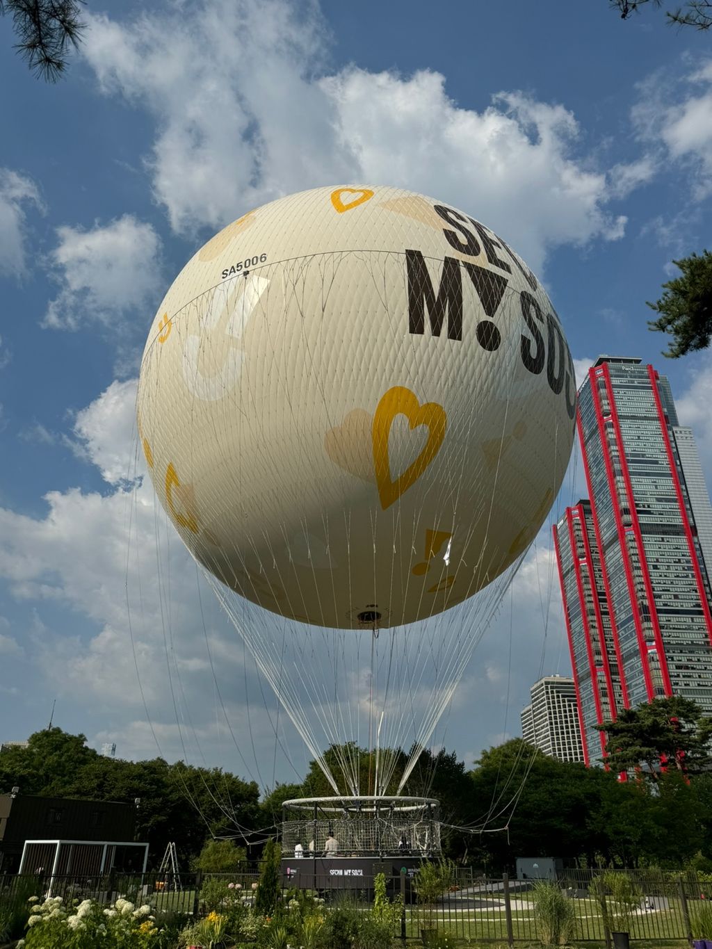 서울달은 여의도 상공 130m까지 올라가는 헬륨 가스 계류형 열기구입니다. 흔히 떠올리는 불 붙이는 열기구가 아니라, 안전하게 헬륨 가스를 채워 수직으로 상승하는 방식이에요.